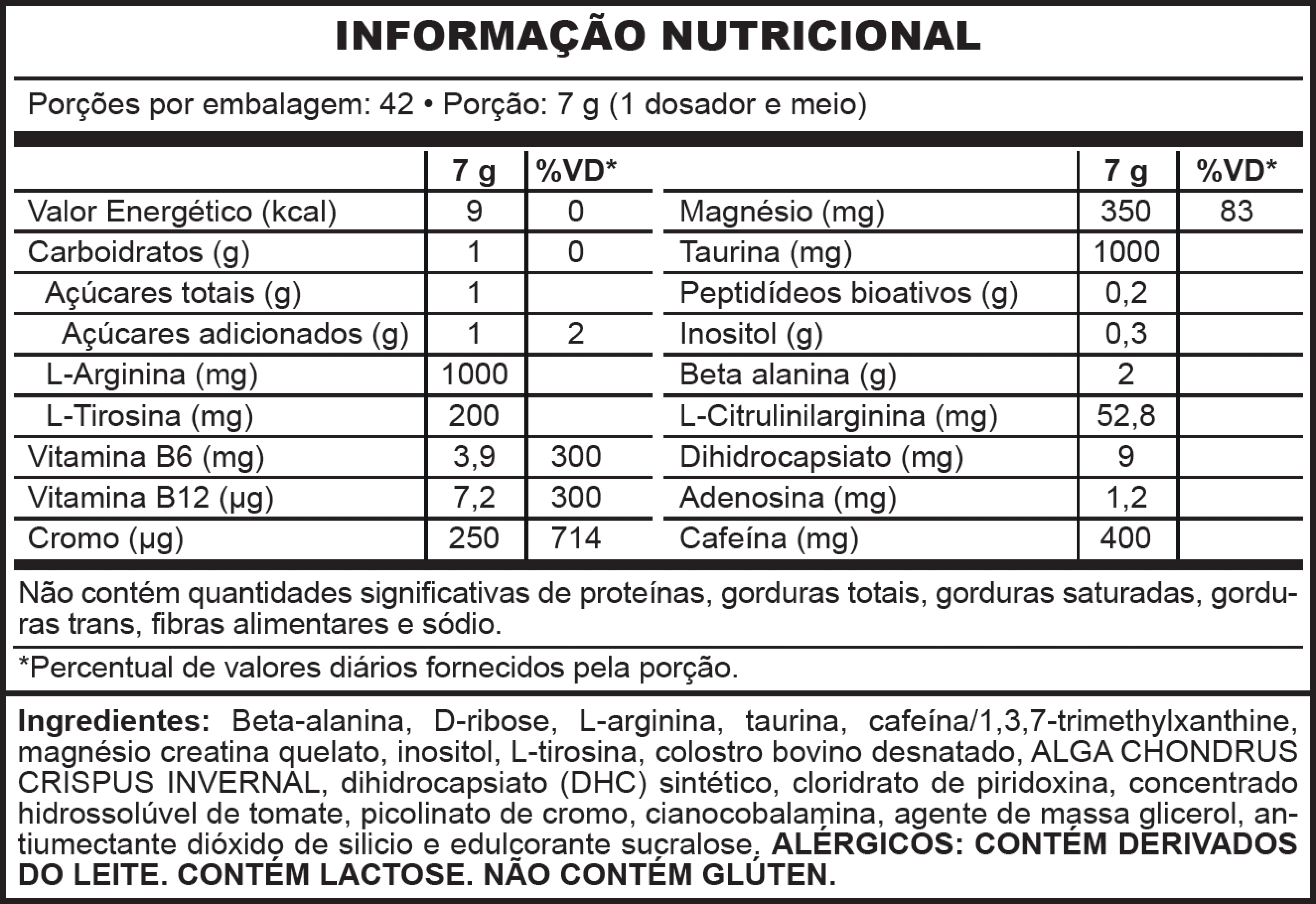Consumir uma porção ao dia (7 g) dividida em doses de 30 mL da solução preparada, com intervalos de 2h entre as doses ou conforme orientação profissional. DOSE RECOMENDADA PARA ATLETAS.